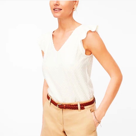 NWT J. Crew Flutter-sleeve Clip-dot Top Sz L large lg new ivory white