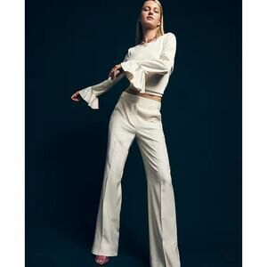 J. Crew Full Length Wide Leg Tuxedo Pant in Italian Wool Fresh Air Blue. With a full-length, wide-leg silhouette and a classic menswear-inspired front pleat, this luxe pair makes one half of our favorite statement-making holiday-party look. Just add the matching blazer. Plus, they were crafted at a Fair Trade Certified™ factory that provides additional income and better conditions for the people who work there.