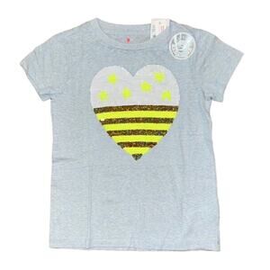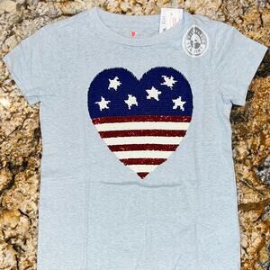 NWT J. Crew Girls' Blue 4th of July W/Flip Sequin Heart Flag T-Shirt