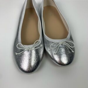 NWT J Crew Girls Silver Metallic Ballet Flats Shoes Size 3 Crewcuts