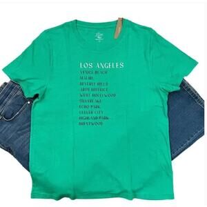 NWT J. Crew Green W/"Los Angeles" Graphic Crewneck T-Shirt - SIZE M