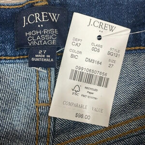 NWT J. Crew High Rise Classic Vintage Denim Jeans 27