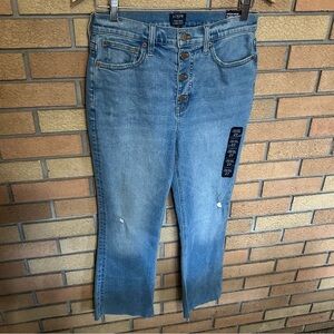 NWT J. Crew High Rise Flare Crop Denim Distressed Jeans Raw Hem Size 27