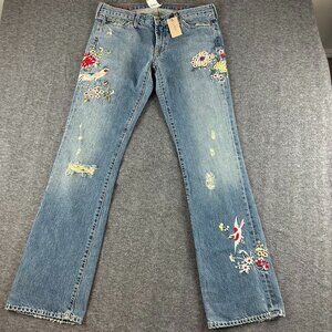 NWT J. Crew Hipslung Bootcut Jeans with Floral and Bird Embroidery 30R