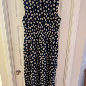 NWT J. Crew Hyacinth Dress Blue Polka-Dot Linen - L
