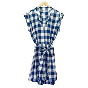 NWT J. Crew Linen Blend Tie Waist Shorts Romper Blue Gingham Check Size 8 NEW
