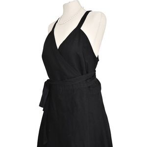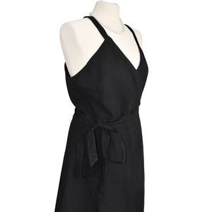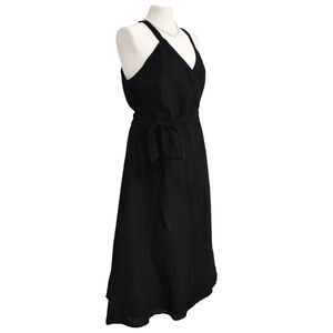J.Crew Black Linen Blend Wrap Dress Size L Sleeveless Midi Belted