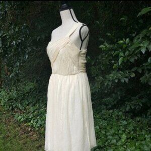 One shoulder strap chiffon dress with lining, Fabric overlapping, champagne color, fit on top, flowy bottom. New with tags.