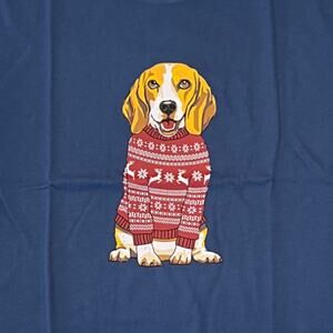 NEW WITH TAGS - RETAIL $40 - SIZE MEDIUM - J. Crew Factory Men's Blue W/Beagle in Christmas Sweater Graphic Tee is perfect for any dog lover! 100% cotton. Regular fit.