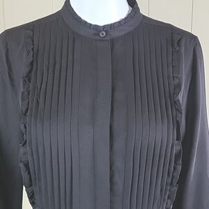 NWT J. Crew Mercantile Black Ruffle Trim Pintuck Long Sleeve Mini Dress