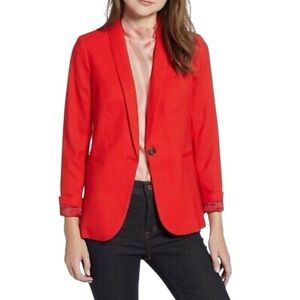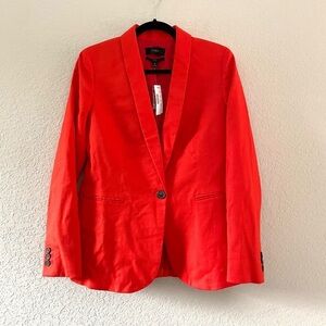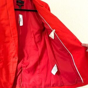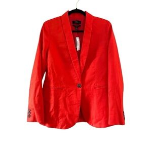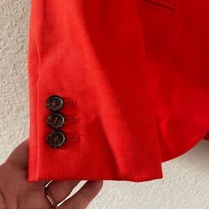 Description: Classic cut blazer, beautiful tailoring, in a deep red— on the orange side of red