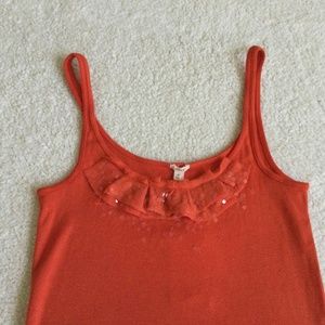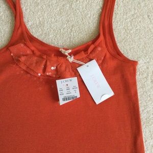 New With Tags J Crew Orange Perfect fit Silk Chiffon Ruffle Cami with Clear Sequins