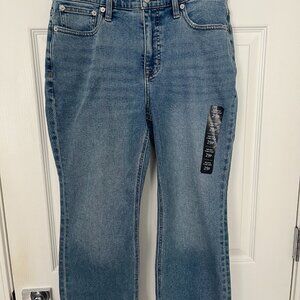 Never worn (new with tags). Sits at waist, slim at the hip and thigh, with a cropped, flared leg, 24" inseam (petite).