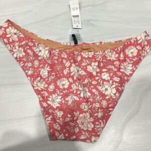 NWT J. Crew Pink Tossed Floral Curved Waist Cheeky Swim Bikini Bottom Size Large