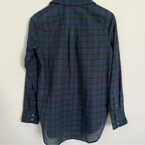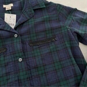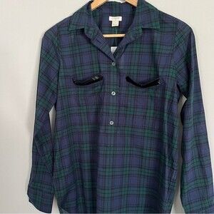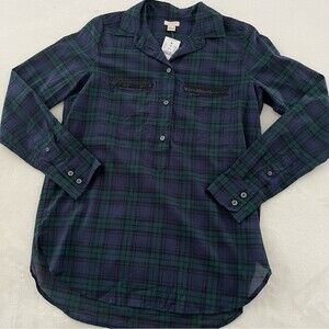 NWT J. Crew Plaid Popover Blouse with Beaded Pockets, Green/Blue/Black, Size XS