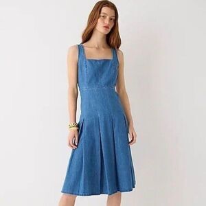NWT J. Crew Pleated Chambray Denim Jean Sleeveless Square Neck Dress Size 6