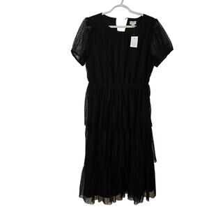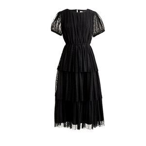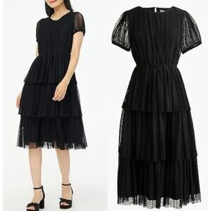 This lovely J Crew Pleated Flock-Dot Puff-Sleeve Dress is new with tags! Its three-tiered design and sheer puff dot sleeves add a touch of elegance. Perfect for any special occasion or a chic everyday look.
