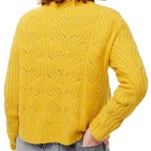 NWT J. Crew Pointelle Cable Knit Sweater, sz L, color Rich Gold.