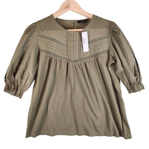 NWT J. Crew Puffed Sleeve Woven Lace Top Women's XS Olive Green Cottagecore