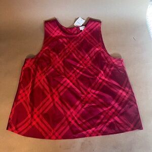 NWT! J Crew Red Sleeveless Back Button plaid Breezy Top Women’s Size L