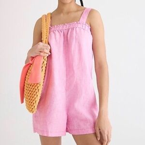 NWT J. Crew Relaxed Linen Adjustable Strap Romper in Pink