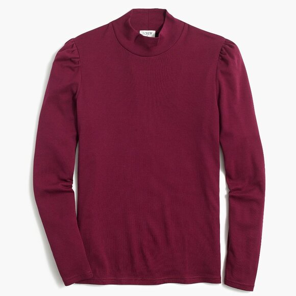 NWT J. Crew Ribbed Mockneck Puff Sleeve Turtleneck Top Pinot Noir | XXS