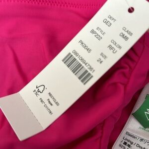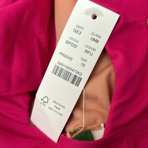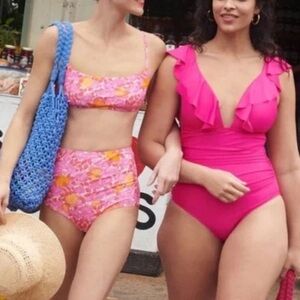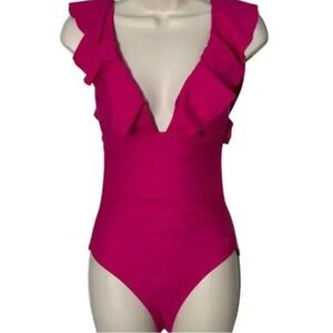 NWT bright berry pink one piece swim with plunging front, ruffle straps and ruched sides for slimming effect. Size 24. Beach, swim, pool, cruise, vacation, summer. (S)