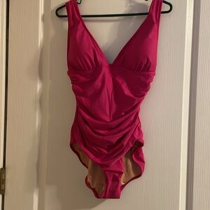 NWT J. Crew Ruched V-neck One-Piece Magenta Orchid 4 Beach Vacation Resort