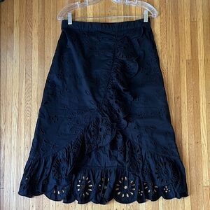 NWT J. Crew Ruffle Front Eyelet Skirt in Black Size Small
