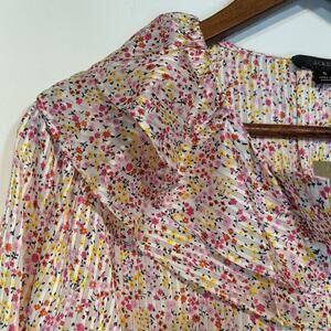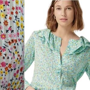 NWT J Crew Ruffle Top Pink Red Shimmer Floral Spring Easter Blouse Small