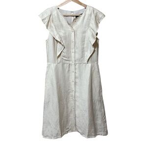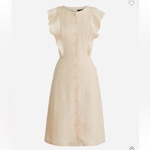 NWT - J. Crew - Ruffle-sleeve linen-cupro blend dress - Size 6 - Westhered Sand