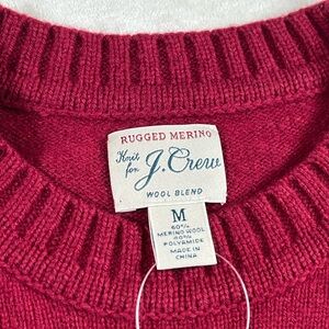 NWT J. Crew Rugged Merino Wool Blend Red Crewneck Pullover Sweater Classic C24