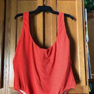 Designed for women, this swimsuit features a scoop neck and comes in a beautiful orange color with seersucker accents. Perfect for a designer and beach-themed outing, this swimsuit is a must-have. Made in China, this one-piece swimsuit is an excellent choice for those looking for a stylish and comfortable swimsuit.
