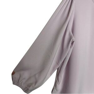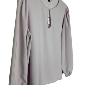 Elegant light lavender blouse with long sleeves. Features a keyhole neckline.