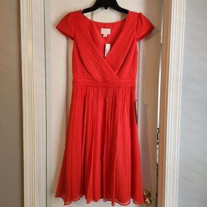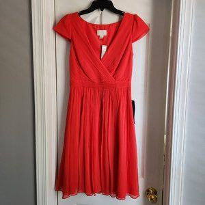 NWT J Crew Silk Chiffon Mirabelle Dress, strawberry red, size 4