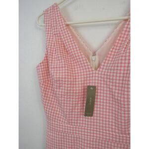 NWT J. Crew Size 0 V-Neck Seersucker Dress in Gingham Pink and White