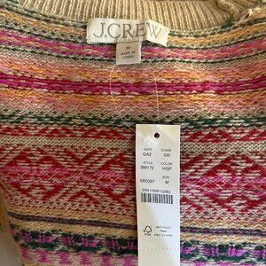 NWT J. Crew Size M Fairisle Stripe Pullover Sweater Puff Sleeve Colorful BM172