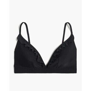 NWT J. Crew Size XS Ruffle French Bikini Top Black Spaghetti Strap Triangle Swim