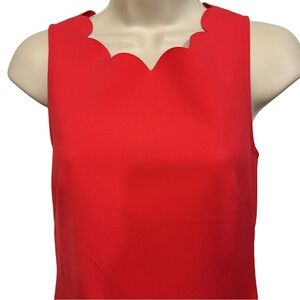 NWT J. Crew sleeveless dress in vibrant red color. Flattering sheath silhouette. Finished with pretty feminine scallops. Created with lovely v-neck back. Concealed back zip. Bust is about 30," length is approximately 34." 91% polyester, 9% Elastane. Size 0.