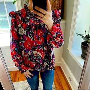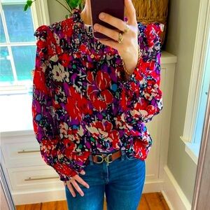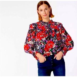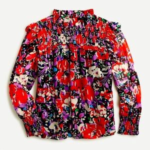NWT J. Crew Smocked Popover Top in Lurex Dot Floral Size XSmall