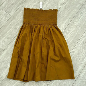 NWT J. Crew Smocked-waist cotton poplin midi skirt size large in a dark mustard color.