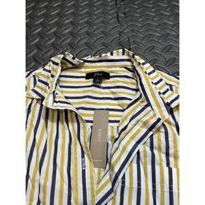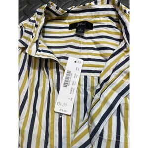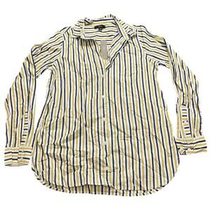 NWT J Crew Striped Classic Fit Boy Shirt Button Top Blue Yellow White Women’s 2