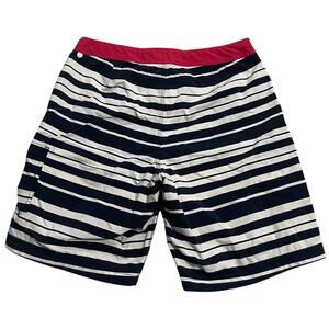 NWT J. Crew Striped Swim Shorts Lined Bathing Suit C4418 Men's Size 33 Nylon Blue White Red