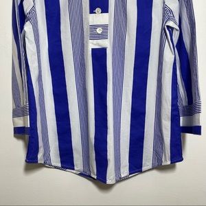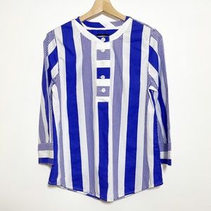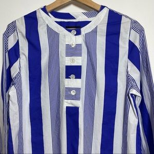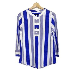 NWT J Crew Striped Tunic Top 3/4 Wide Sleeves Half Button Blue White Sz XS