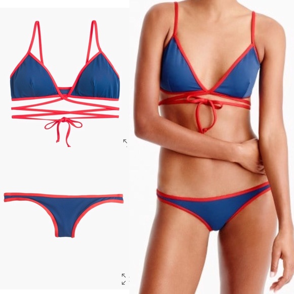 Tipped wrap around string bikini top (Size Large) and hipster low rider bottom (size Medium). New with tags.