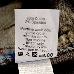 Material - 98% Cotton, 2% Spandex (Machine Wash Cold)