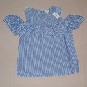 NWT J Crew Top Cold Shoulder Chambray Striped Ruffled Sz 8