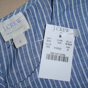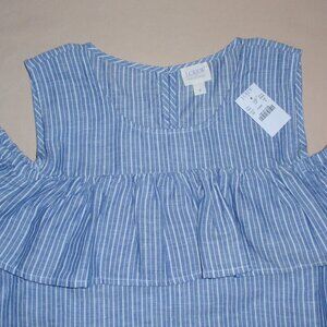 NWT J Crew Top Cold Shoulder Chambray Striped Ruffled Sz 8 Blue White Linen