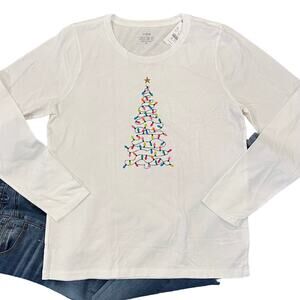 NEW WITH TAGS - Retail $45 - SIZE XL This J. Crew White W/Christmas Tree Lights Graphic Tee is precious and perfect for the holiday season. Better Cotton. Slightly loose fit. Hits at hip. Machine wash. COLOR is white