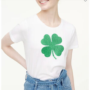 NWT J. Crew White W/Green Glitter Clover Graphic Tee -